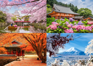 Khác với khí hậu nhiệt đới của Việt Nam, Nhật Bản nằm trong vùng ôn đới nên bốn mùa xuân – hạ – thu – đông phân chia rất rõ rệt. Mỗi mùa mang một diện mạo riêng, từ sắc hoa anh đào rực rỡ đến tuyết trắng phủ núi.